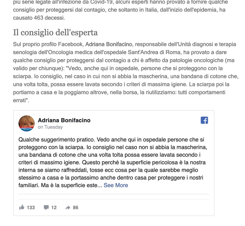 Ref Doctor Adriana Bonifacino, Onchologist from the Sant'Andrea Hospital in Rome: