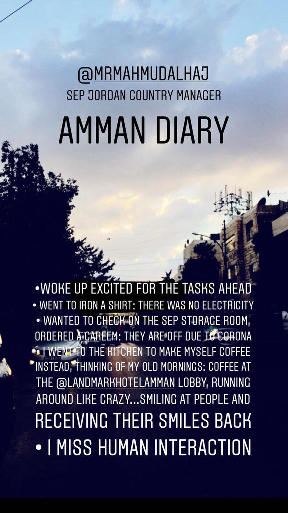 Amman Diary - Mahmoud Al Haj, SEP Country Manager, has been in lockdown with no electricity since march 18th. One hour of electricity a day, charging his mobile with the help of kind passers-by... that is how he summarised his feelings yesterday: