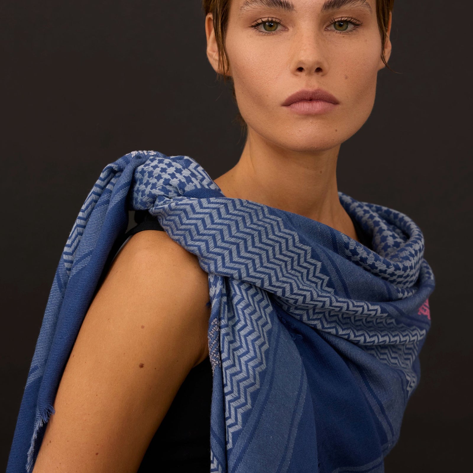 BLUE MERINO WOOL & SILK KEFFIYEH SHAWL IBRAHIM
