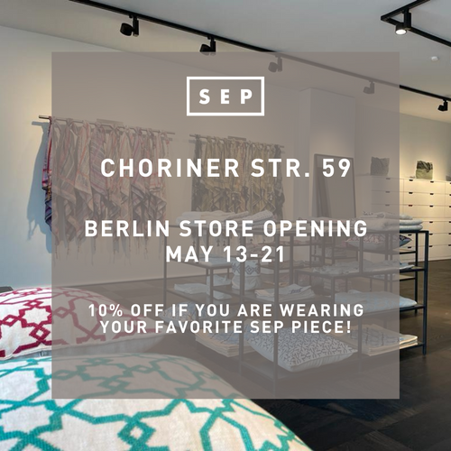We want to celebrate with you! Wear your favourite SEP pieces to our Choriner Str. 59 store throughout the week and receive an exclusive WELCOME 10% reduction on your purchases (in-store only)!